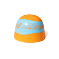 Fudge anache topped with a droplet of caramel on a layer brownie cookie crunch  in a dark chocolate shell