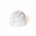 White chocolate ganache infused with premium vanilla on top of a layer of homemade confetti cake